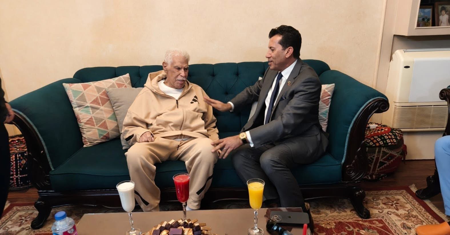 أشرف صبحي يزور حسن شحاتة للاطمئنان على صحته بعد خروجه من المستشفى